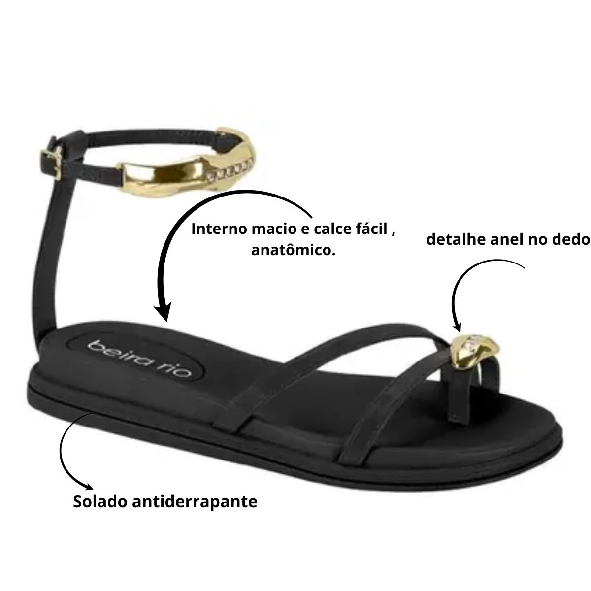 Sandália Beira Rio Flat Feminina Leve e Confortável