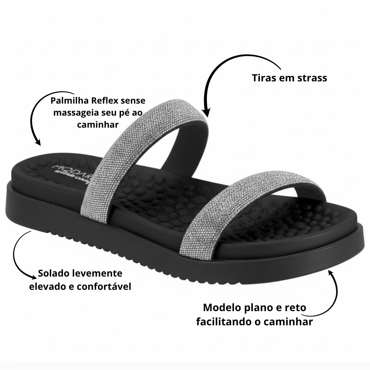 Tamanco Feminina Strass Modare Ultraconforto ortopédico 7178