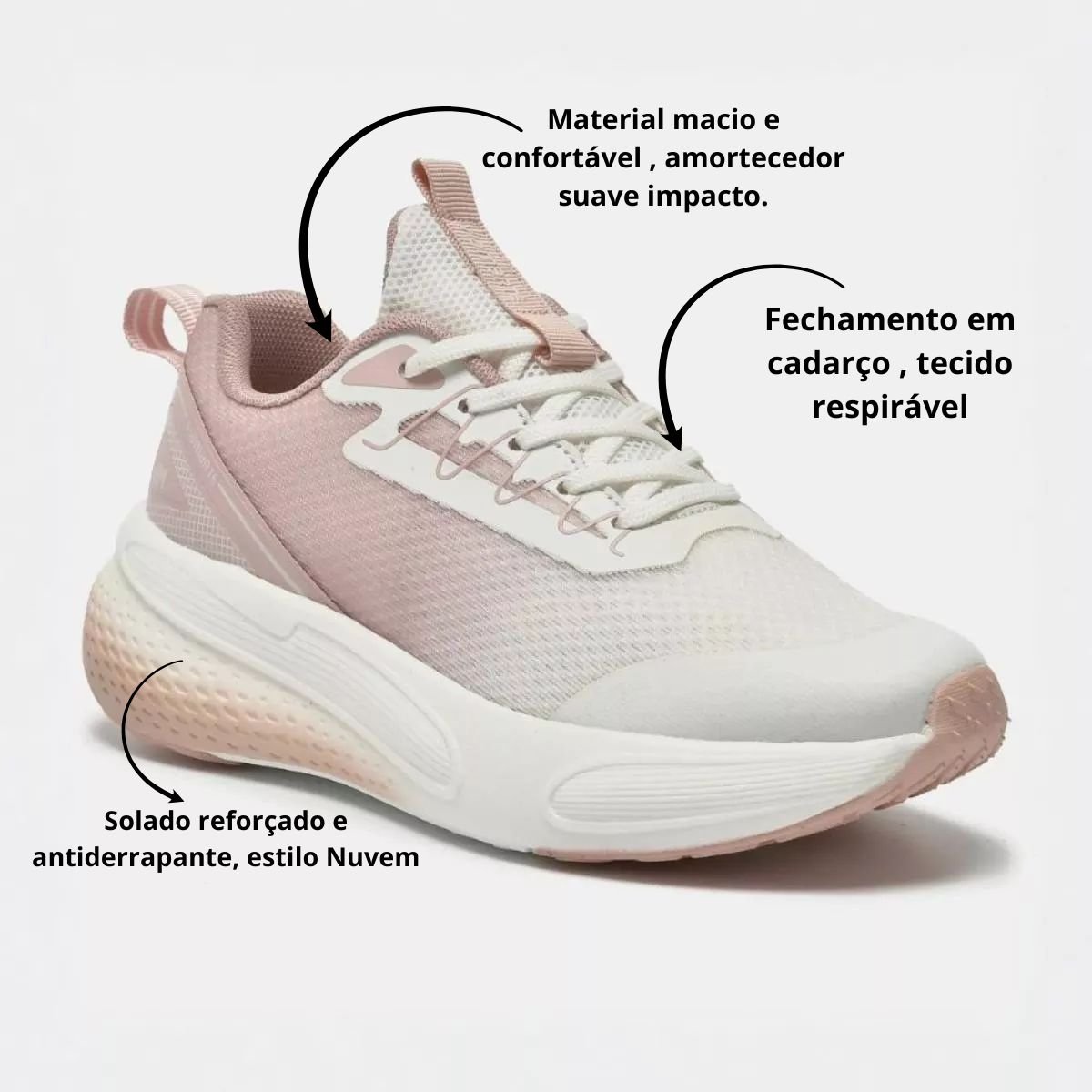 Solado: Leve, flexível com efeito “nuvem”